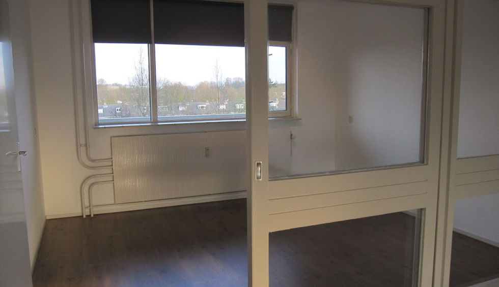 Slaapkamer 3: Toegang via de hal en woonkamer via een schuifdeur met grote raam partijen wat veel lichtinval biedt, geheel voorzien van een laminaatvloer.